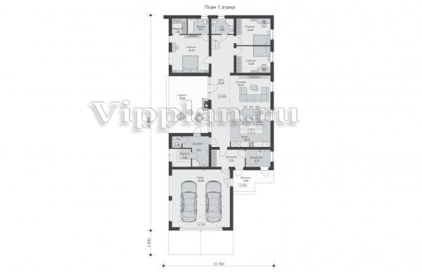 | Размеры дома: | 24.96м×12.76м |